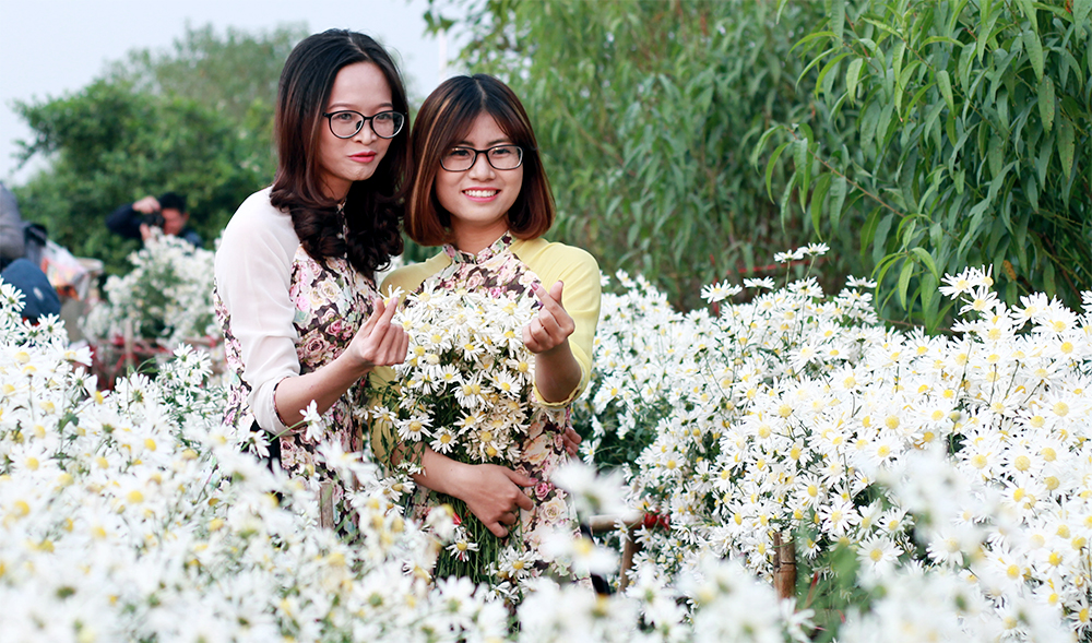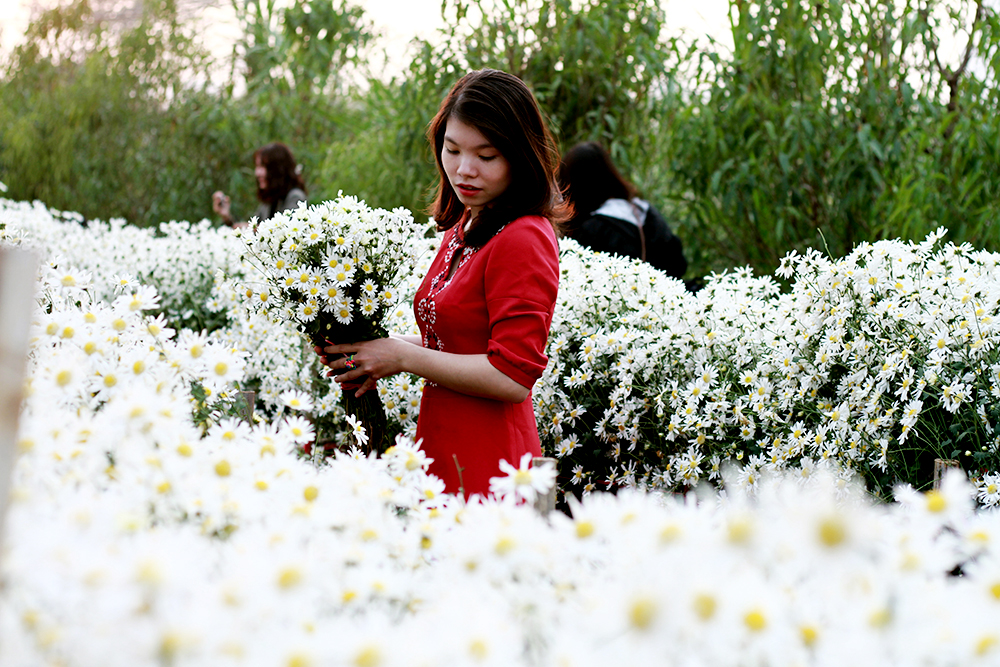 Ngày cuối tuần, chị bạn tôi bảo “đang ngủ thì bị con em dựng dậy đi chụp cúc họa mi. Phải chụp trong chiều nay vì mai nó bay vào SG. Chụp xong nó còn muốn mua mấy bó mang vào, vừa cắm, vừa làm quà nữa”. Trong khi đó, một khách hàng đã U60 cũng vội trang điểm điệu đà để “đi chụp cúc họa mi với mấy bà bạn bên Tây về”. Thế là, cái loài hoa này, không chỉ làm say lòng người ở Hà Nội, mà còn xao xuyến bất kỳ cô gái nào trót nhìn thấy qua ảnh.