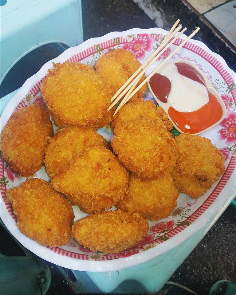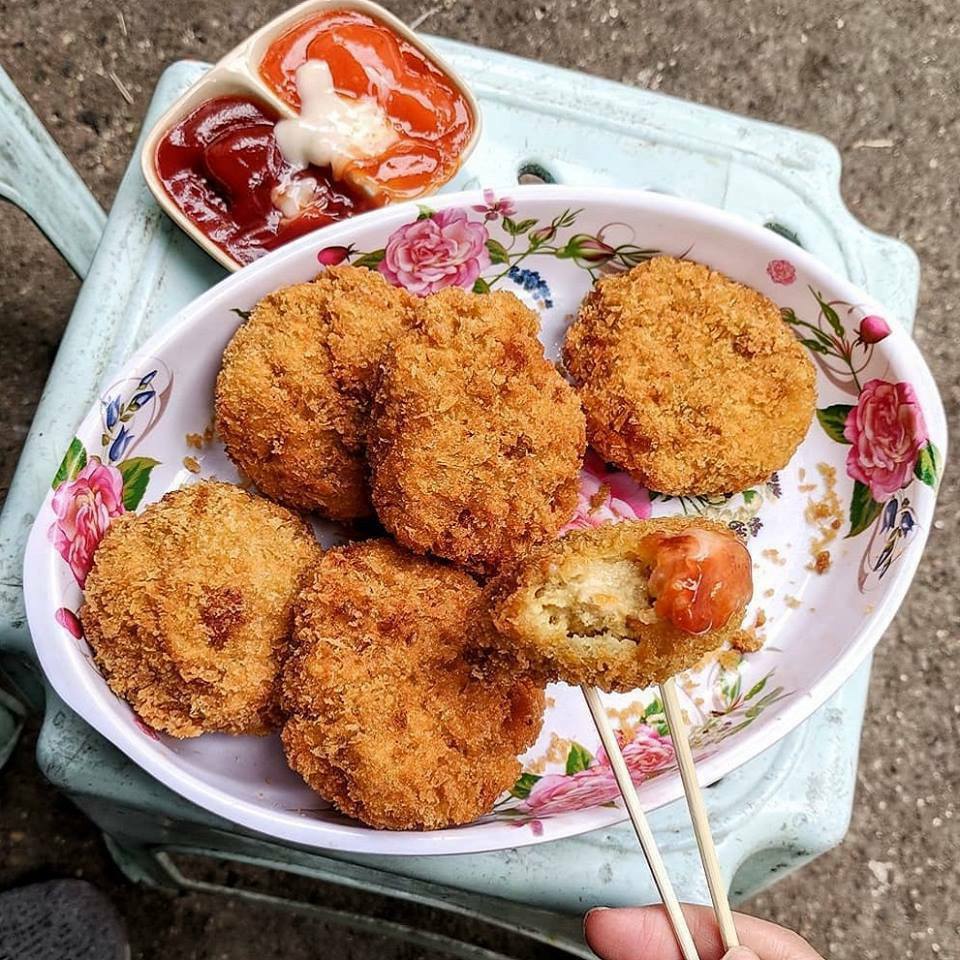 Bí mật nằm ở vỏ ngoài bánh vàng tươi bắt mát mà mùi vị cũng cực “nịnh” miệng, nhất là mức giá cực kỳ thân thiện với ví tiền cuối tháng, chỉ 5k/cái.