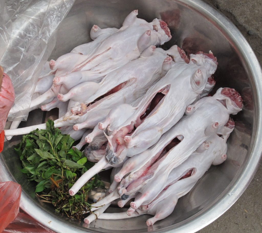 Chuột sau khi được sơ chế sạch sẽ thì sẽ đem băm nhuyễn làm nhân bánh xèo.