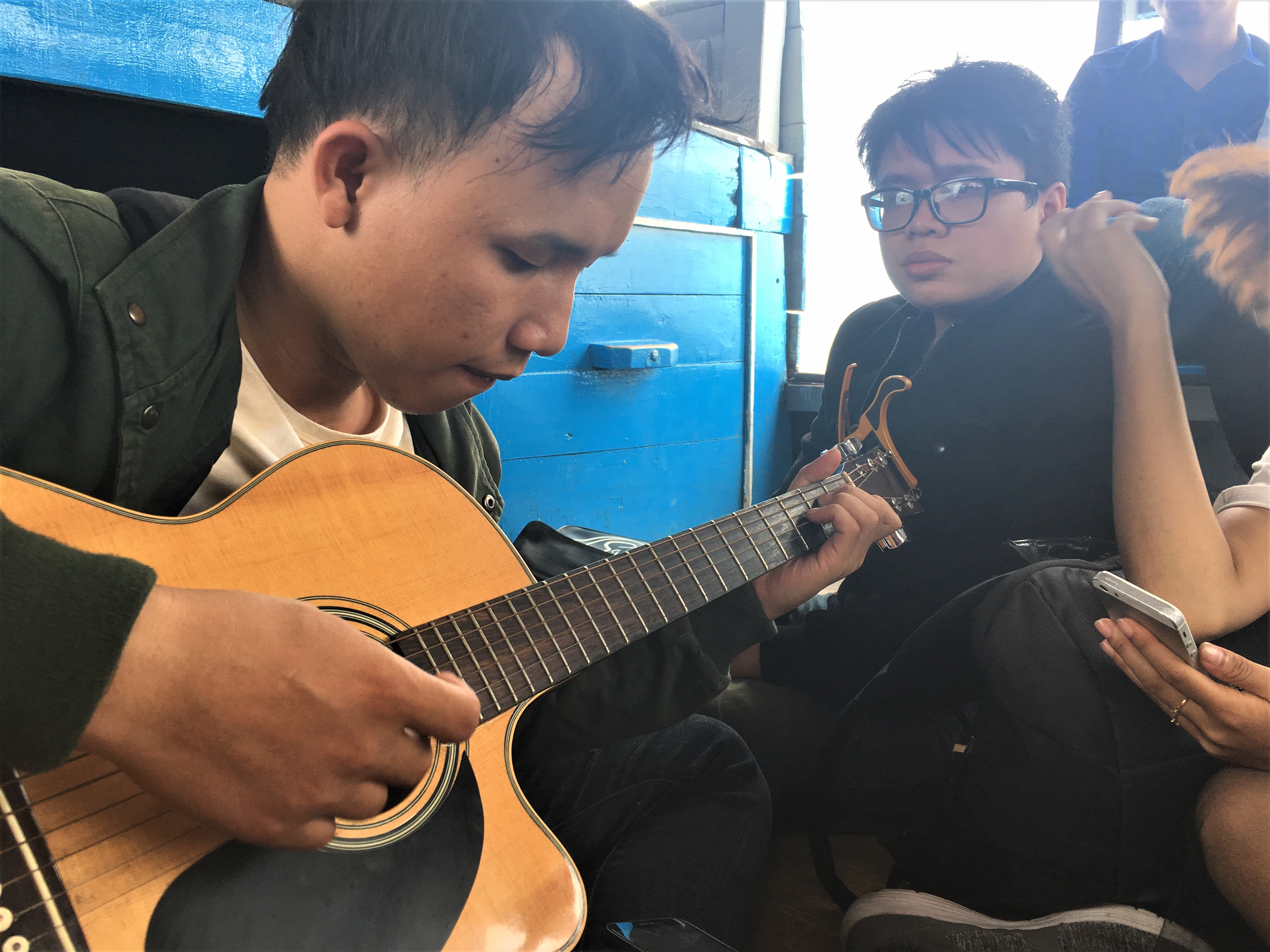 Trong thời gian ngồi đò di chuyển ra đảo, các bạn có thể cùng nhau đàn hát vui vẻ để thấy thời gian trôi nhanh hơn