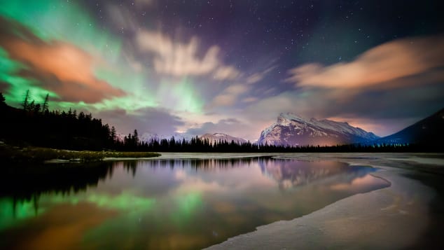 Vườn quốc gia Banff, tọa lạc ở sườn núi thuộc tỉnh Alberta, là vườn quốc gia lâu đời nhất Canada. Bên cạnh việc được thư giãn bằng bộ môn thể thao trượt tuyết, du khách đến đây còn có cơ hội ngắm nhìn vẻ đẹp huyền ảo của hiện tượng Bắc cực quang.