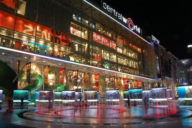 CentralWorld: Là trung tâm mua sắm lớn nhất ở Thái Lan, CentralWorld chắc chắn là một trung tâm thương mại mà ai cũng muốn đặt chân đến một lần. Với tổng diện tích 830.000 m2, CentralWorld có diện tích lớn hơn 30% so với các trung tâm thương mại khác ở Bangkok gồm 500 cửa hàng, hơn 100 nhà hàng và vô số các điểm tham quan khác như rạp chiếu phim và một khu ẩm thực.