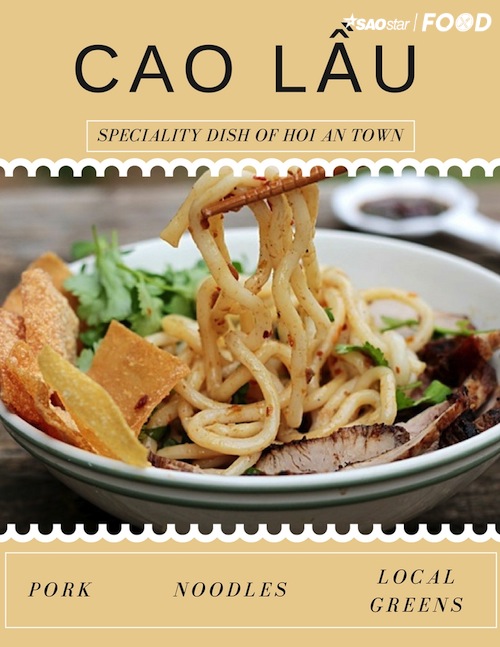 Là một món sợi nhưng chẳng phải là bún mà cũng không gọi là mì dù nó có màu vàng khá giống. Cao lầu luôn khiến thực khách phải đặc câu hỏi về những bí mật gắn liền với sự tồn tại của phố cổ. Có mặt từ thời phồn vinh của một thành phố cảng triều Nguyễn, vào thế kỉ thứ 17, khi sự giao lưu buôn bán của người Hoa và Nhật tấp nập vào nước ta. Cao lầu xuất hiện như cái giao hoà tuyệt vời của ẩm thực đa dân tộc.
