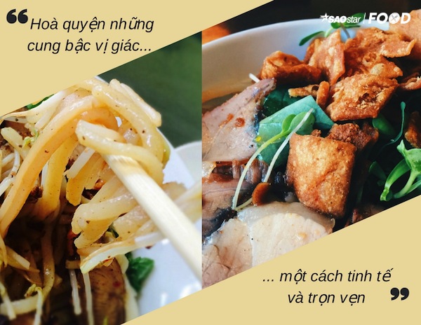 Cái hay là cao lầu không cần dùng nước lèo đầy ấp như những món bún món mì khác, chỉ cần một chút nước sốt làm xá xíu chan lên rồi trộn đều mọi nguyên liệu lại. Khi ăn, cao lầu mang lại cho thực khách cái hoà quyện tinh tế giữa những sợi bánh sựt sựt, vị chua cay ngọt đắng chát đủ đầy của rau cùng cái ngọt tự nhiên của lát thịt nạc, không quên cái sự béo giòn vỡ tan trong miệng của tép mỡ chiên và nay được thay thế bằng cao lầu khô thái vuông.