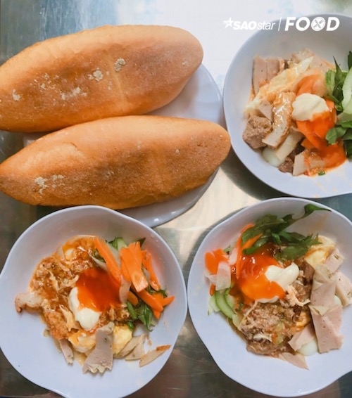 Xé một mẫu bánh mì vẫn còn âm ấm, chấm vào phần thức ăn đã được trộn đều cho mọi hương vị áo đều trên bánh, bạn sẽ cảm nhận được từng tầng hương vị của món. Cái beo béo của trứng, chả cá dai dai ngòn ngọt, đấy là chưa kể viên xíu mại chắc thịt nhỏ nhắn ăn cùng. Vị chua dịu của dưa chua ăn kèm cũng giúp món ăn thêm hương thêm vị.