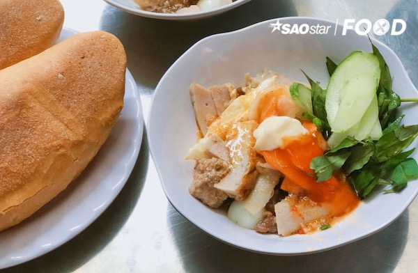 Bánh mì được hơ trên lò than để lúc nào cũng nóng giòn, người sành ăn sẽ nhận ra sự khác biệt của bánh mì ở đây, vỏ bánh giòn và đặc ruột, không béo vị bơ mà có mùi thơm tự nhiên của bột mì. Thức ăn trong tô mỗi thứ một ít, ấy vậy mà khi trộn lên, quệt bánh mì ăn cùng lại khiến bạn vừa no bụng. Một phần thập cẩm chỉ 15.000 đồng, giá quá rẻ cho một bữa sáng.