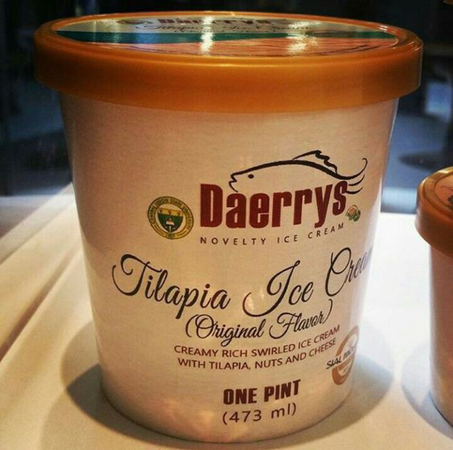Philippines là đất nước có kha khá các món ăn độc đáo và cách ăn kem của người dân nơi đây cũng không hề bình thường như bao nước khác được. Đếm sơ sơ, người Philippines đã có món kem trứng cá sấu, kem vị thịt lợn, kem chocolate ăn kèm… cá duội khô và một trong những món độc đáo nhất mà bạn có thể tưởng tượng đến đó chính là kem cá rô phi!