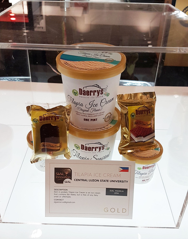 Món tráng miệng độc đáo này là sản phẩm trí tuệ của Chủ tịch Đại học Central Luzon - Tereso Abella và trợ lý Dana Vera Cruz - người đã hoàn thiện công thức cho sản phẩm. Dự án mới này đã giành được giải thưởng Sáng tạo Vàng tại Hội chợ quốc tế ASEAN diễn ra tại Manila vào tháng 8 năm 2016. Từ đó, món kem cá rô phi này đã được giới thiệu với các thực khách ở khắp Paris, Canada, Trung Quốc, Indonesia và Trung Đông.