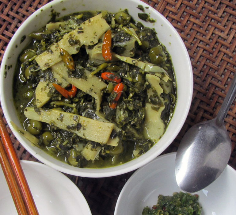 Rau sắn không phải là món ăn sang trọng, nhưng đòi hỏi người chế biến phải rất cầu kỳ. Búp sắn non được ngâm nước cho bớt nhựa rồi vò nát, trộn thêm chút muối rồi đem bỏ vào vại ủ chua khoảng 4-5 ngày. Rau sắn muối được ăn kèm với các món khác, đem xào hoặc nấu cá đều rất ngon.