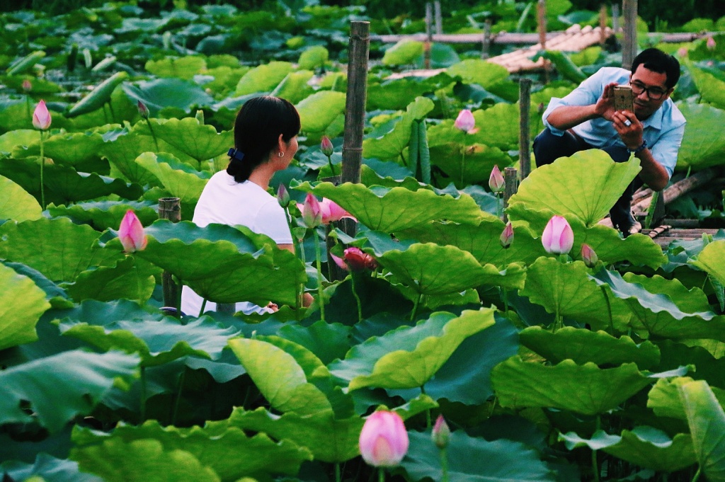 Có lẽ, đứng trước đầm sen mênh mông những lá và hoa, người ta có cảm giác như mình đang lạc chân đến một chốn yên bình mà thanh tao khó kiếm giữa biết bao điều vồn vã, đông đúc của Thủ đô.