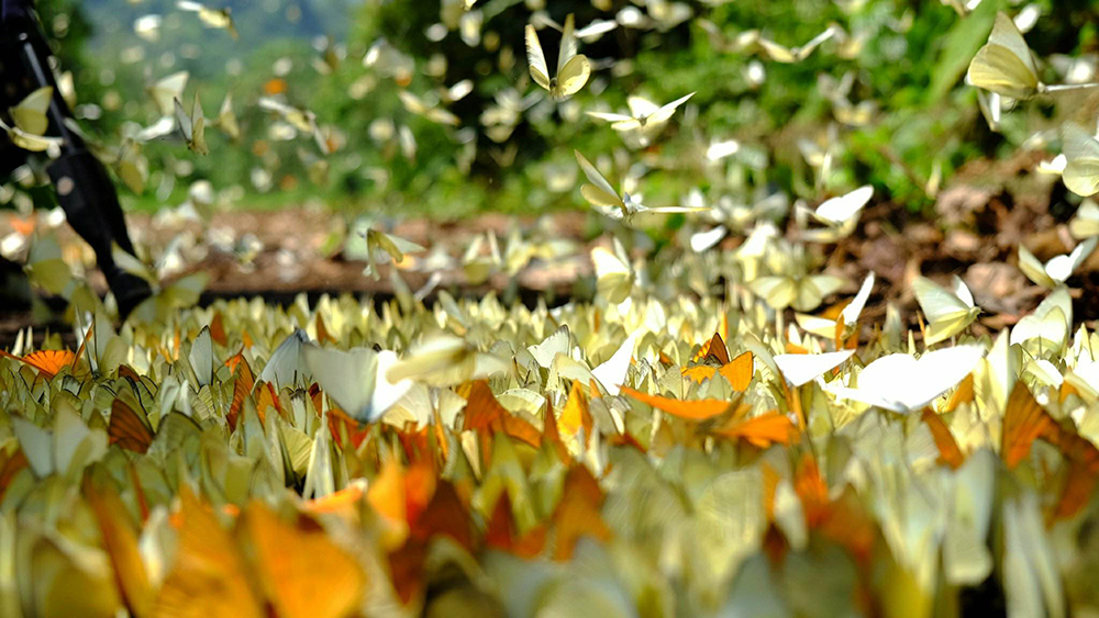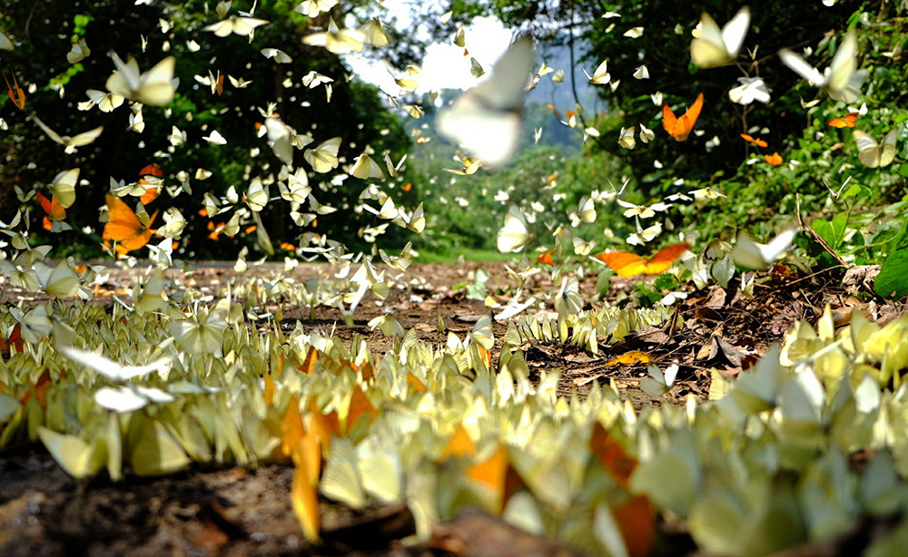 Thời tiết mát mẻ và sau những cơn mưa xuân, Vườn quốc gia Cúc Phương xuất hiện hàng nghìn con bướm đủ màu sắc bay lượn.