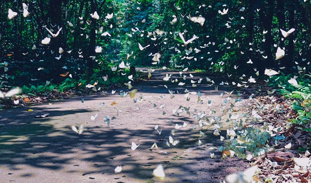 Vào khoảng thời gian này, Cúc Phương đang vào mùa bướm bay rợp trời khiến khung cảnh nơi đây huyền ảo như tiên cảnh, đẹp ngẩn ngơ như trong mơ.