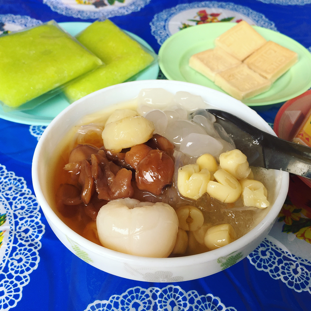 Ngoài các món ngọt của Campuchia quán còn bán thêm các món chè của Thái Lan cũng nên thử như: xôi Xiêm nhân cadé, lòng đỏ trứng trộn bột nếp hấp,…