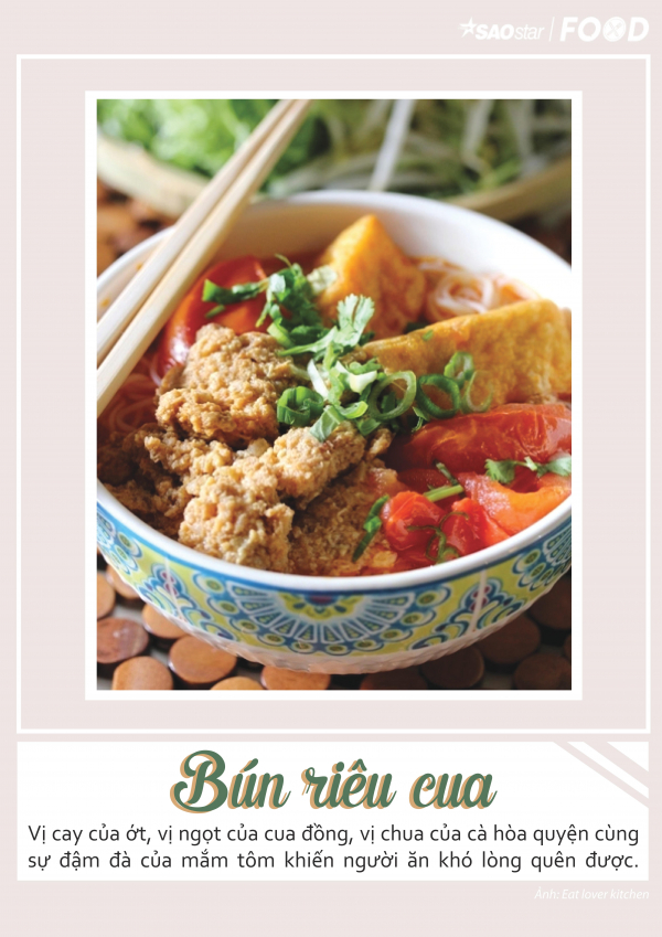 Bún riêu cua được biết đến với xuất xứ từ miền Bắc, nhưng giờ đã có thể dễ dàng tìm thấy trên mảnh đất miền Nam. Bún riêu cua đã gắn liền với người dân Sài Gòn như một món ăn thân quen từ hàng quán ngoài đường đến bữa ăn bình dị trong gia đình. Món ăn gồm bún và phần riêu cua được nấu kỹ càng. Riêu cua thực chất là canh cà chua nấu cùng gạch cua được giã nát, nước mỡ, mẻ, nước mắm, quả dọc, ăn kèm với mắm tôm, rau muống chẻ hoặc rau diếp. Tuy nhiên sự khác nhau về vùng miền cũng khiến tô bún riêu có ít nhiều sự thay đổi. Người Bắc dùng cà chua và giấm bống để tạo vị chua thanh cho món ăn thì người Nam sẽ dùng mẻ. Người miền Nam ăn cùng với đậu phụ chiên hoặc huyết heo, có nơi còn dùng cả ốc, sáng tạo ra món bún riêu ốc. Đặc biệt, phần riêu cua của người miền Nam có nơi sẽ ép lại như một miếng bánh, sẽ xắn ra từng phần khi dọn cùng tô bún. Mỗi khi nhớ đến món ăn thanh đạm, người ta lại nghĩ ngay đến một tô bún riêu nóng hổi, thơm ngon này.