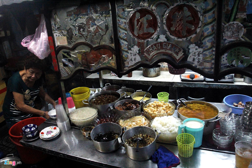 Có tuổi đời hơn 70 năm, trải qua chừng đấy năm, quán chè vẫn không hề thay đổi vị trí. Quán chè mở cửa bán từ cuối buổi chiều đến tận nửa đêm. Càng về khuya quán càng đông khách.