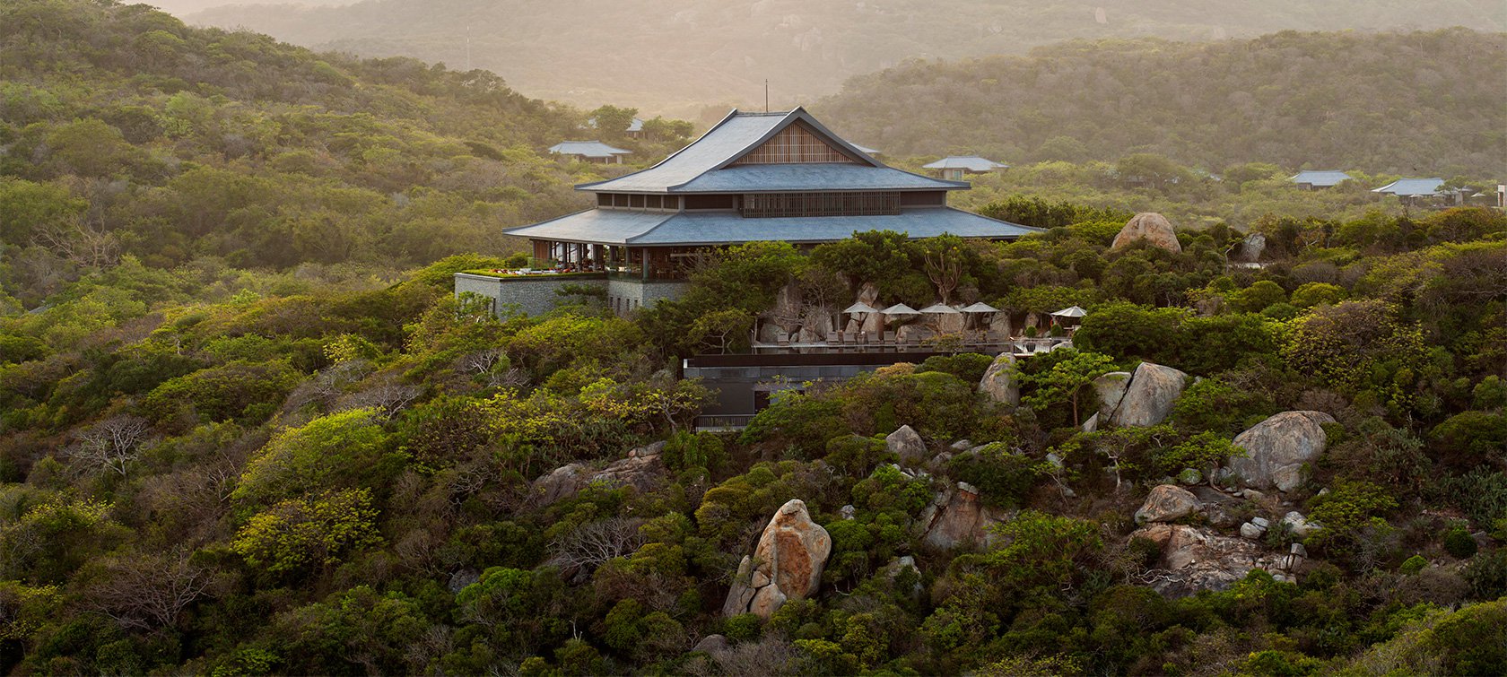 Từ sân bay Cam Ranh, mất khoảng một tiếng đồng hồ ngồi ô tô để đến được Vườn quốc gia Núi Chúa. Ở giữa không gian hoang sơ của vườn quốc gia, Amanoi resort nổi bật lên như một hòn ngọc. Amanoi resort có 36 villa sang trọng, trong số đó có một vài villa có bể bơi riêng và tọa lạc trên đồi với tầm nhìn bao quát xuống vịnh Vĩnh Hy.