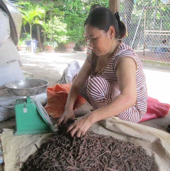 Theo ông Phạm Văn Hợi, chồng bà Sang, 1kg trùn hổ giá 30.000 - 50.000 đồng, tùy theo mua lẻ hay mua sỉ. Ông Hợi cho biết, mỗi ngày bán 50 - 200 kg trùn, nếu so với thời điểm “hoàng kim” cách đây 17 năm, con số trên chỉ là số lẻ.