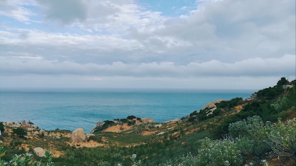 Không chỉ là núi non hùng vĩ, làng mạc, đồi cát mà phóng tầm mắt ra phía ngoài sẽ là bờ biển xanh êm đềm trong khung cảnh sinh hoạt đặc trưng của làng chài. Bức tranh sơn thuỷ hữu tình hơn khi thỉnh thoảng xuất hiện những hồ nước trong veo, phẳng lặng với đủ hình dạng như làm dịu đi cái nóng của cuộc hành trình.