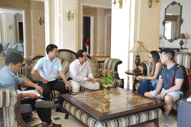 2 vợ chồng anh chị Helena Phan Nguyen và Tony Nguyen (phải) trình bày sự việc với Thanh tra Sở Du lịch tỉnh Thừa Thiên Huế.
