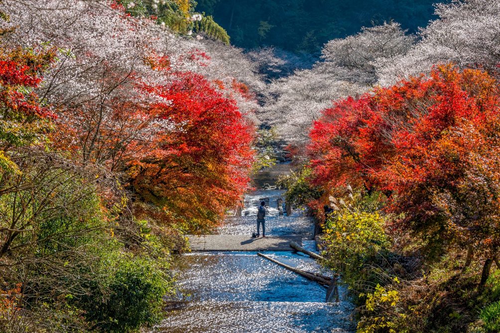 Tại sao ngắm hoa anh đào vào mùa thu lại thích hơn? Trong tiết trời mát lạnh, những sườn núi, bờ hồ nước Nhật rực rỡ sắc thu, tạo thành bức tranh thiên nhiên tuyệt đẹp mà chúng ta thường thấy trên bưu thiếp. Xen giữa những vạt màu chói lọi ấy là những bông anh đào năm cánh hồng nhạt vừa tương phản, vừa tôn vinh, làm cho trời thu trở nên tươi vui vô cùng. Chỉ ở Obara mùa thu, bạn mới thấy cảnh sắc hiếm có này.
