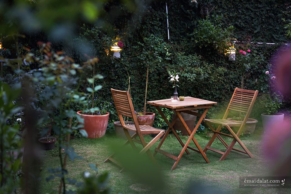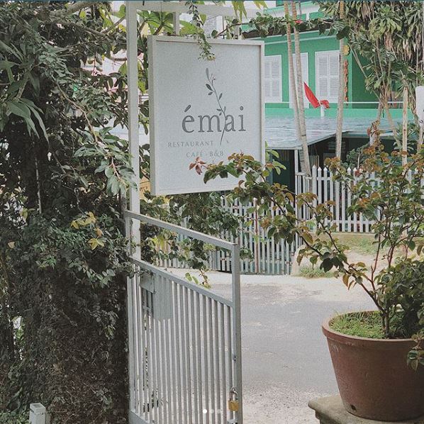 Émai nằm nép mình ngay góc đường Thi Sách gần trung tâm thành phố. Phía sau cánh cổng sắt nhỏ là một căn biệt thự kiểu Pháp cổ điển, với nhà hàng phong cách Ý kết hợp cà phê cùng một mảnh vườn xanh mướt, đầy hoa. Tầng trên là các phòng ngủ nho nhỏ dành cho những vị khách từ phương xa đến chơi.