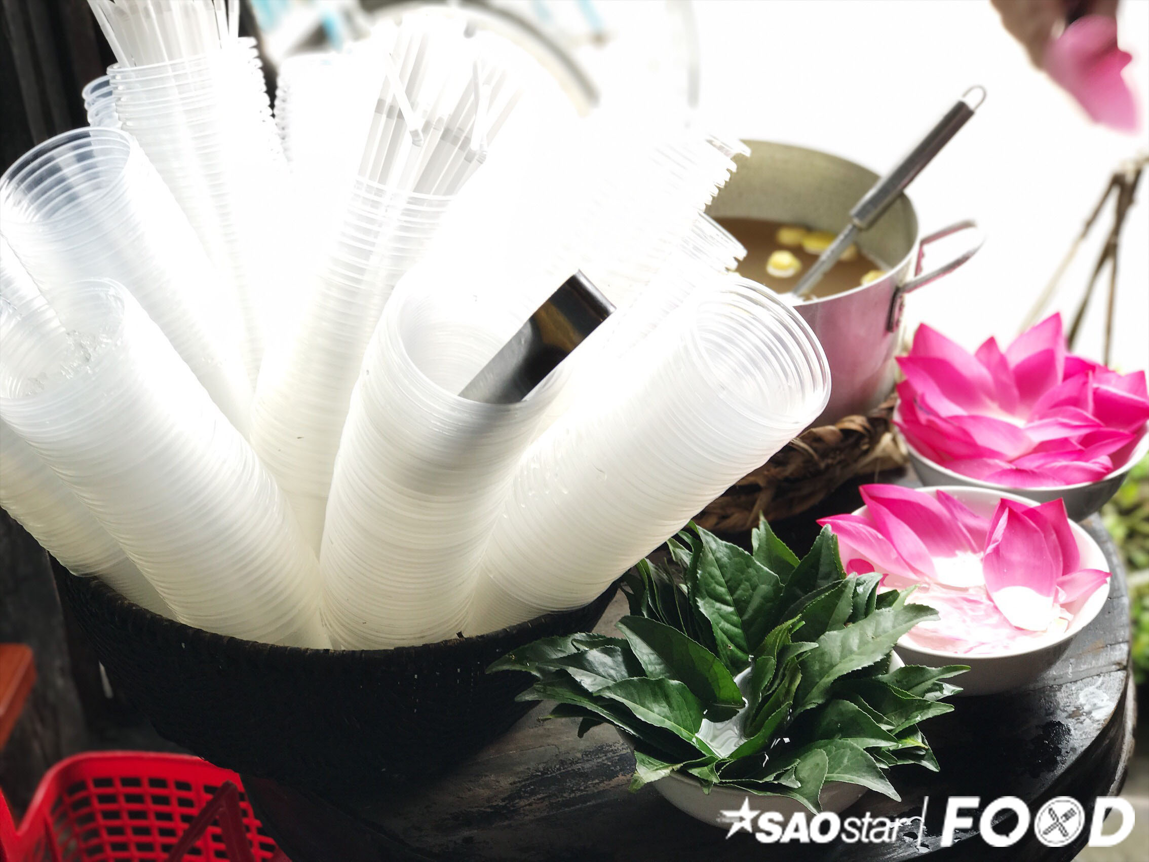 Nếu để ý kĩ, trong nồi nấu trà người ta bỏ thêm một chút hạt sen để tạo mùi thơm cho món nước này.