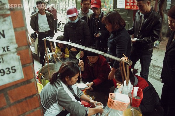 “Thì mình cũng muốn thực khách có nhiều lựa chọn thôi à. Bán mãi 1 loại sợ người ta chán“, cô Vân nói. Đông khách nên mỗi ngày, cô Vân đều phải có chồng và người trong nhà ra phụ giúp. Gia đình cô có 5 chị em gái và mỗi ngày lại là 1 người khác nhau cùng cô Vân có mặt ở quán ăn nhỏ vỉa hè. Khi hết bánh, chồng cô lại mang thêm từ nhà ra để tiếp tế. Công việc diễn ra chớp nhoáng chỉ trong vòng 3 giờ nhưng hóa ra, để phục vụ kịp nhu cầu khách hàng, cả gia đình cô Vân lúc nào cũng phải làm việc bận rộn.