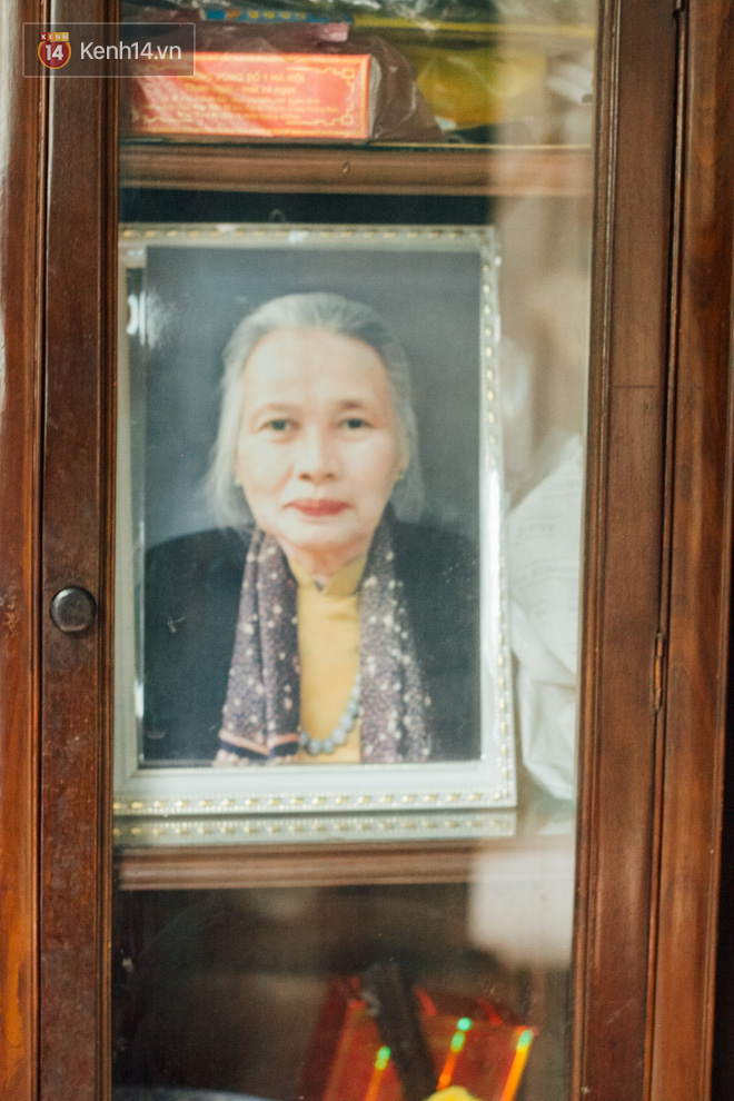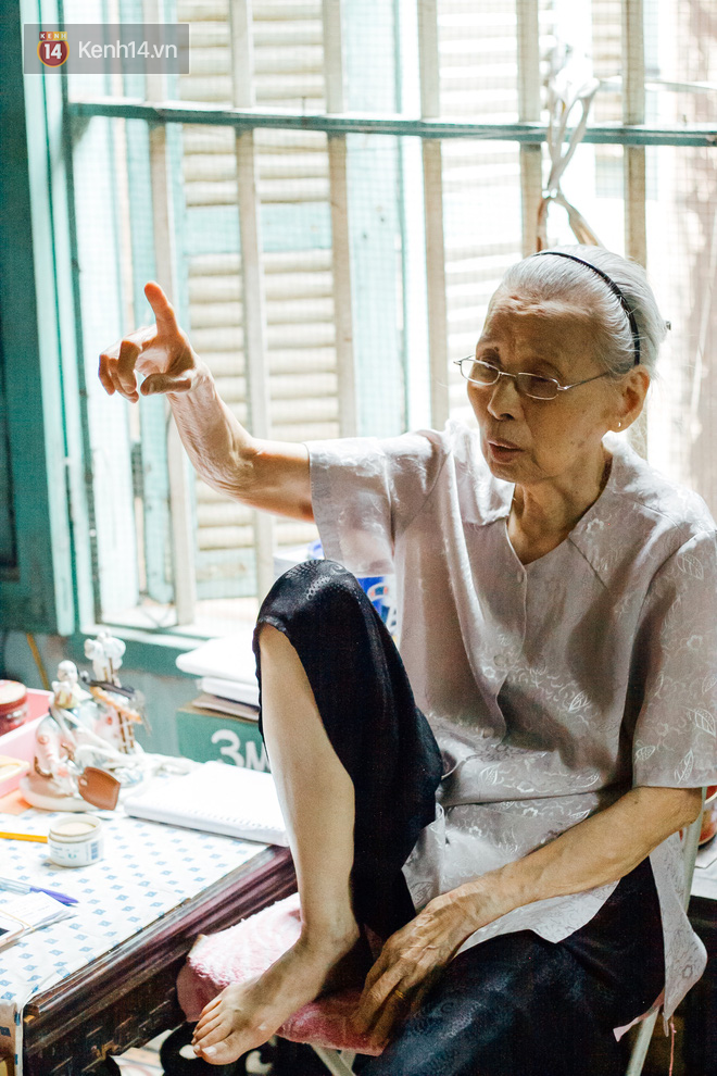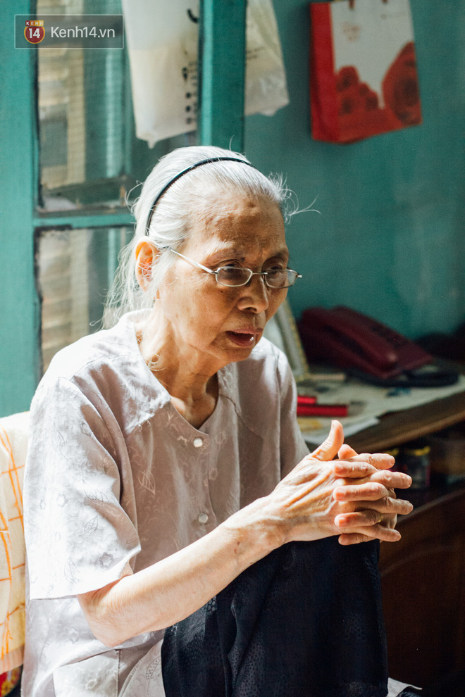 Cầu thang gỗ lim của ngôi nhà Pháp cổ có đến cả trăm năm nay. Một cụ bà sống trên tầng 2 đang loay hoay bóc từng quả vải chuẩn bị bữa cơm trưa. Cụ tên Vân, tên đầy đủ là Bùi Thị Vân (SN 1930) - người con gái gốc Hà Bắc xưa nổi tiếng với món lạc rang húng lìu giữa phố cổ này.