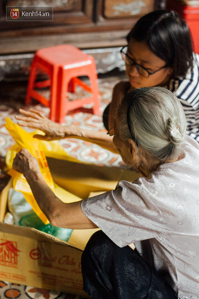 Hình ảnh cụ Vân được in ra rồi gắn lên từng sản phẩm.