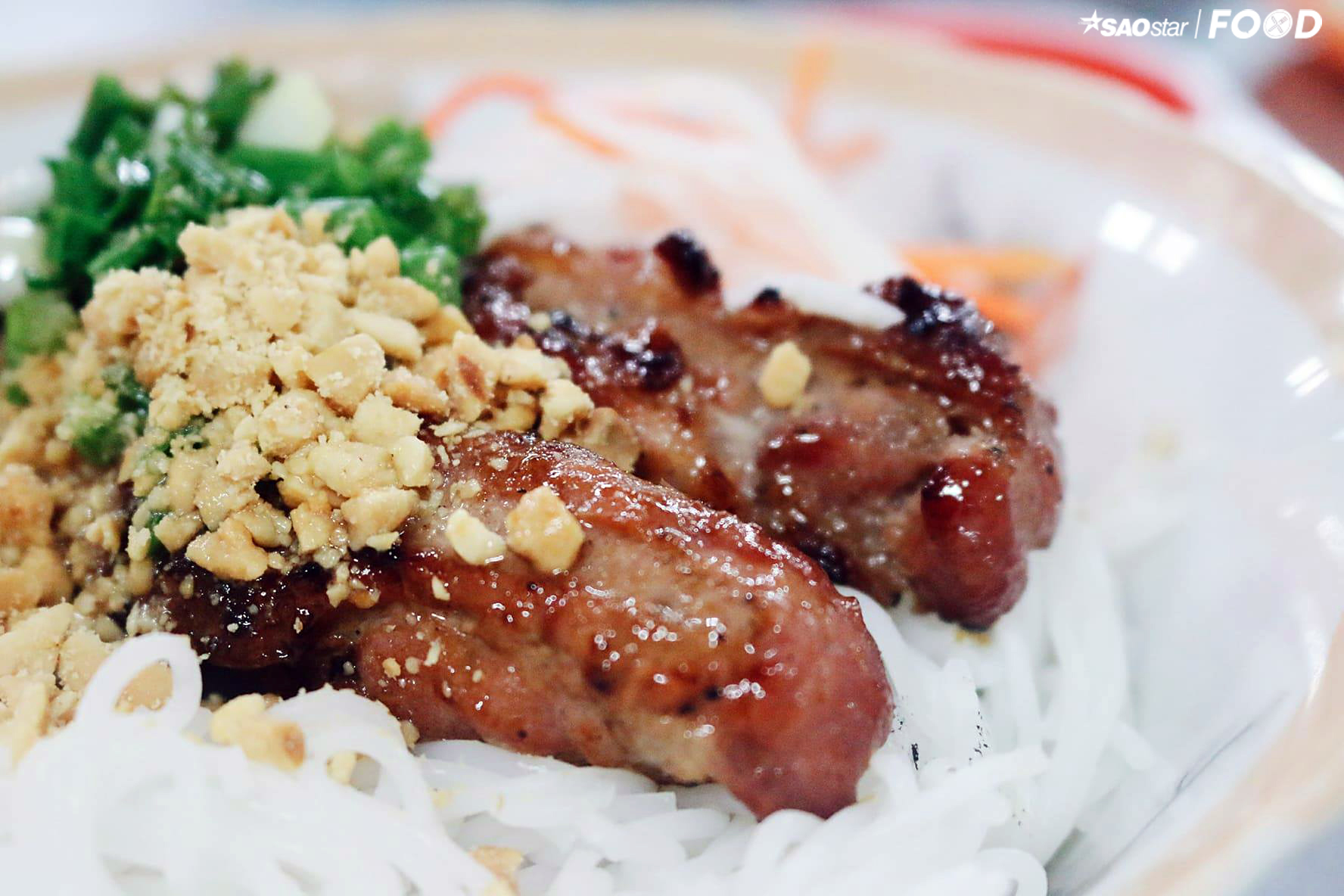 Nước chấm pha theo kiểu miền Nam, hơi ngọt và đặc một chút, kết hợp cùng món ăn rất ổn, tạo nên nét riêng biệt cho món ăn tại nơi này. Rau giá đầy đủ, khá tươi và nhiều cho một phần ăn. Cách bài trí đơn giản, đầy màu sắc bắt mắt từ màu vàng xém của những miếng chả giò, màu nâu đậm đà của thịt nướng, màu cam sống động từ đồ chua lẫn sắc xanh của rau giá, mỡ hành và cả hương vị bùi bùi của đậu phộng kết hợp tạo nên tổng thể một món ăn khó lòng từ chối được.