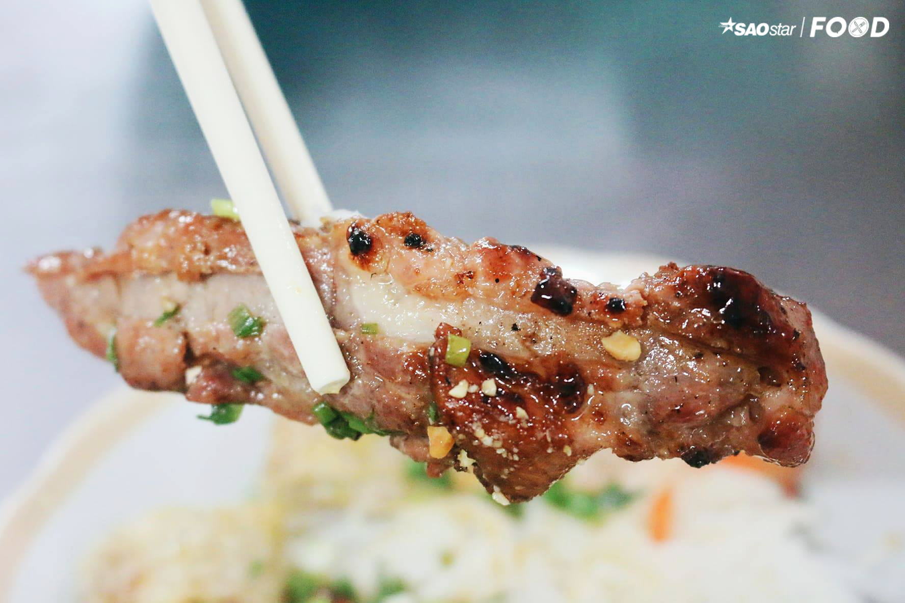 Thịt dùng để nướng là phần thịt khá nạc nhưng không bị khô, vẫn có chút mỡ hòa vào để cân bằng tỉ lệ. Món ăn được ướp rất đậm đà, thấm đẫm gia vị mặn ngọt đầy đủ, giữ cho mình bí quyết riêng khiến người ăn chỉ cần thưởng thức qua một lần là sẽ nhớ mãi một hương vị dễ gây nghiện. Thịt luôn được nướng mới và nướng ở phía đối diện của quán ăn nên không gây ám mùi cho thực khách khi ghé đến. Người thợ luôn tay đảo đều xiên để phần thịt đạt độ chín vừa tới, giữ được độ ẩm mọng nước bên trong.