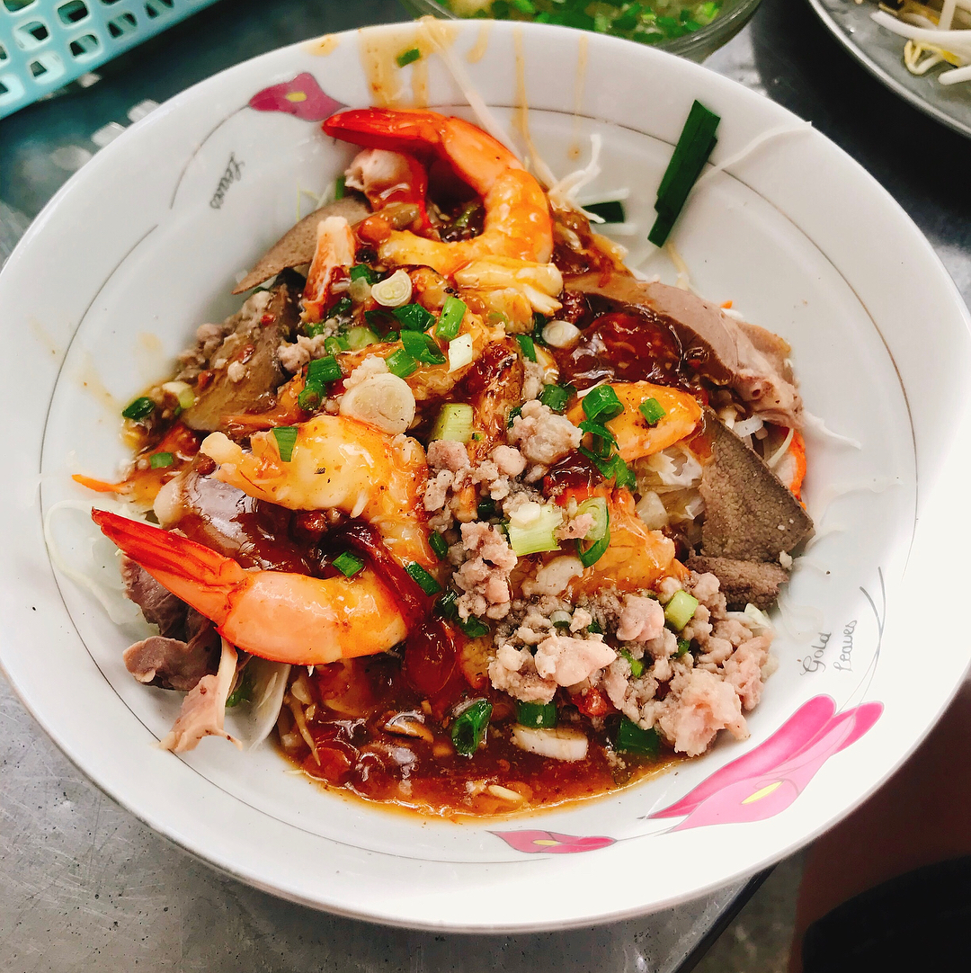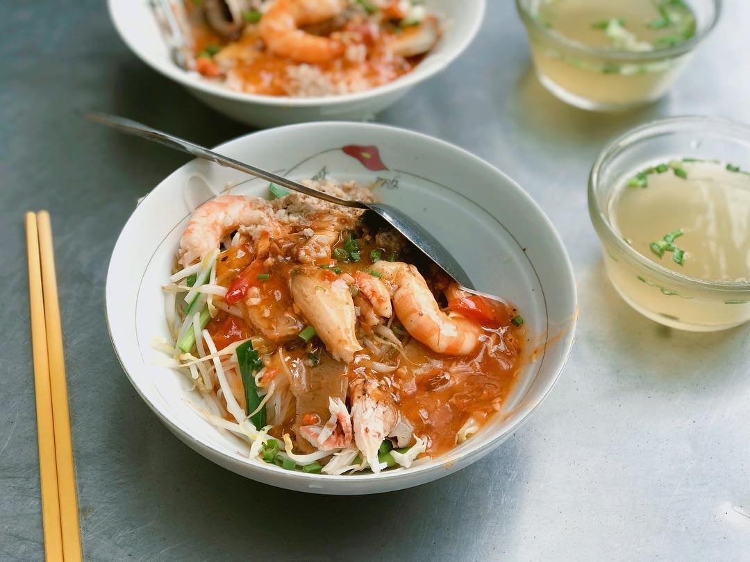 Nổi tiếng với món hủ tiếu khô với loại nước sốt tuyệt vời tạo nên một hương vị không thể quên lẫn. Ngoài nước sốt thì hải sản như: thịt cua và tôm đều rất tươi, ngọt thịt. Hòa quyện cùng sợi hủ tiếu chuẩn Mỹ Tho dai và thấm đượm vị sốt bí truyền! Một tô đặc biệt ở đây có giá 55.000 đồng.