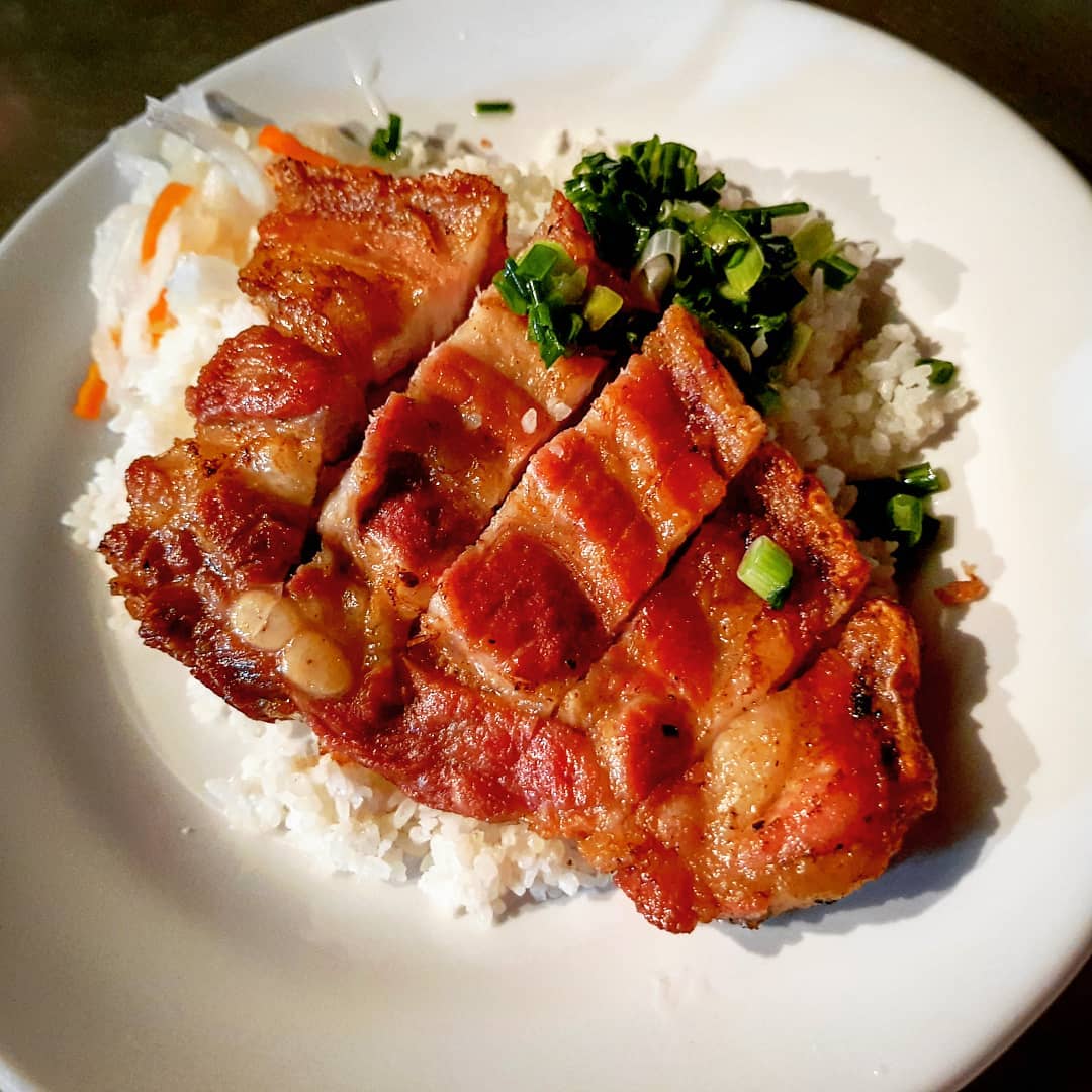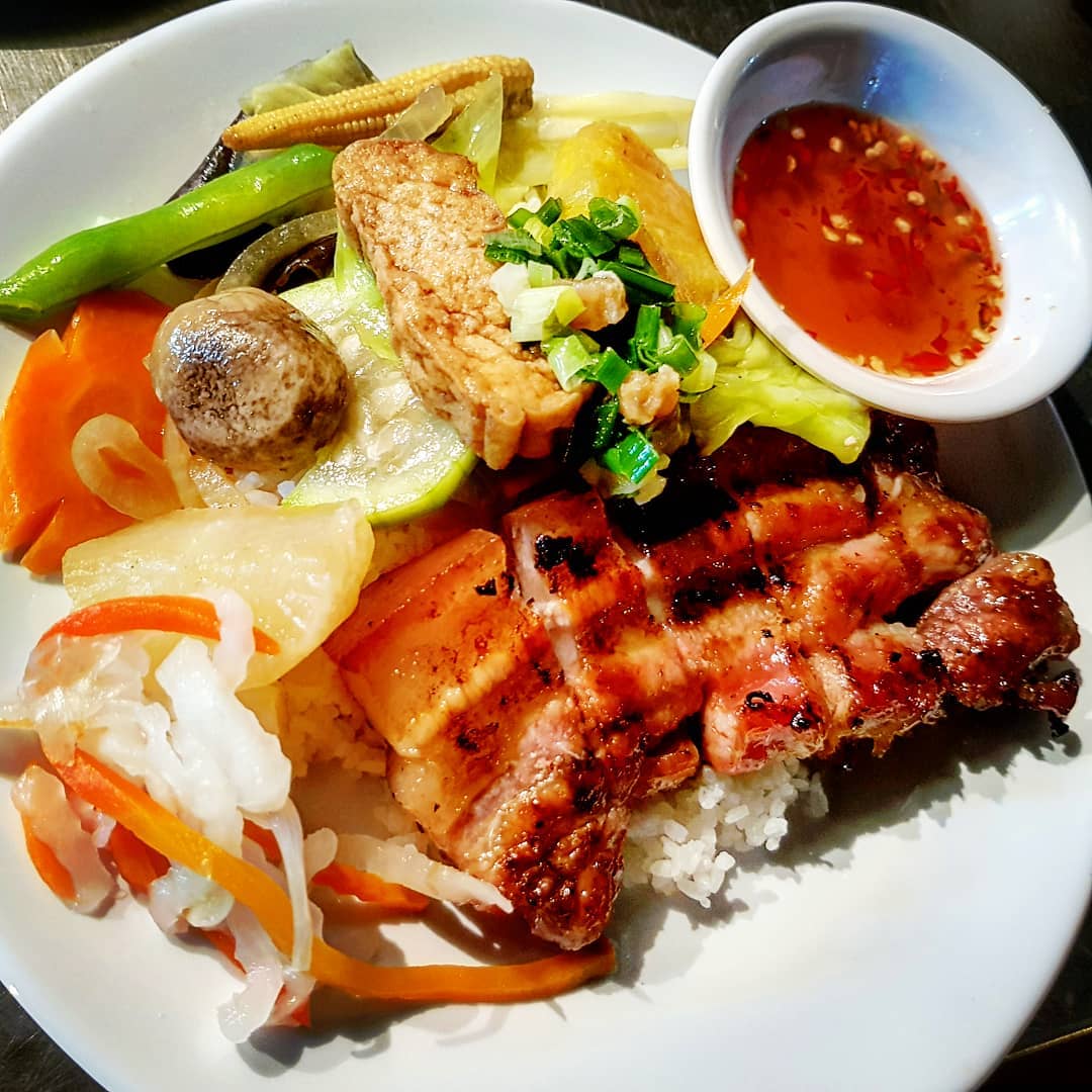 Một phần cơm có giá dao động từ 70.000 - 100.000 đồng tùy các món ăn kèm hấp dẫn như: thịt quay, gà chiên, mực nhồi thịt, sườn nướng,… Các món đều được tự tay quán làm, nêm nếm gia vị vừa ăn khiến nhiều thực khách phải lòng món cơm nơi đây.