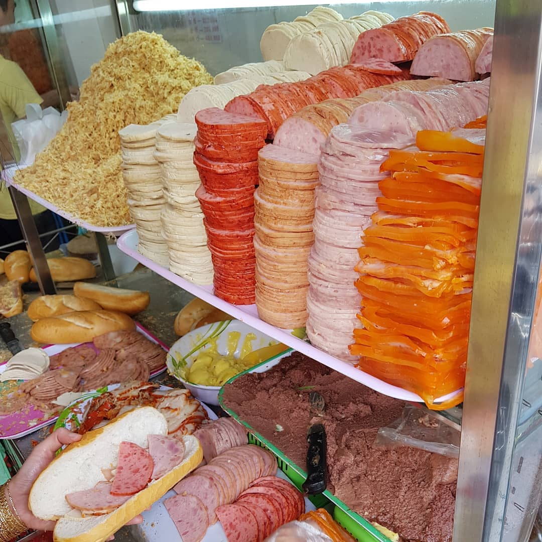 Một phần đầy đủ còn có thêm chà bông, hành ngò, đồ chua, dưa leo,… làm đỡ ngán sau dàn thịt nguội khủng khiến bạn chỉ muốn chi nặng mua thêm ổ nữa.