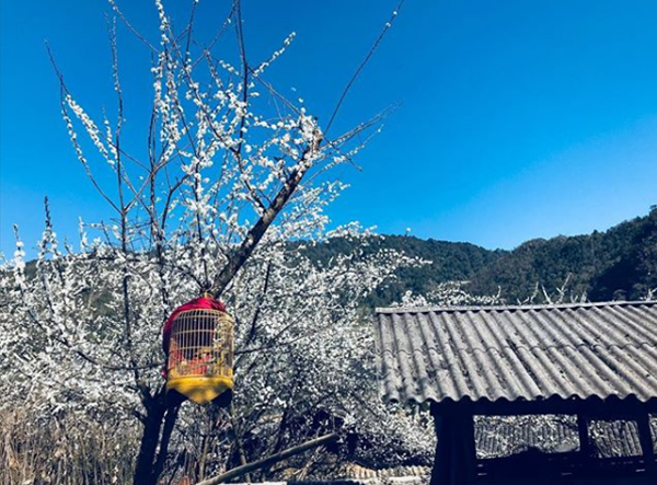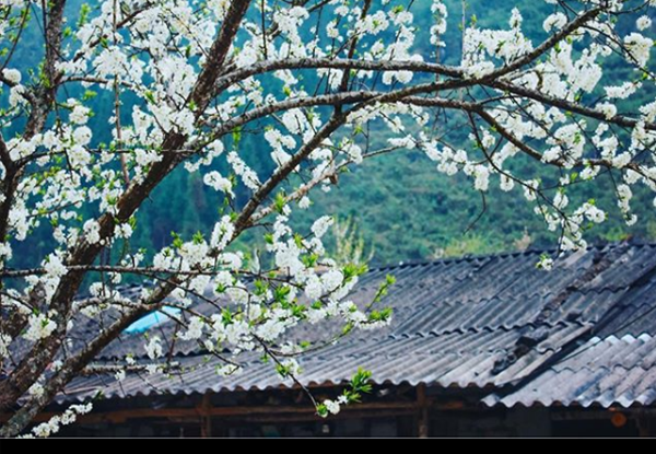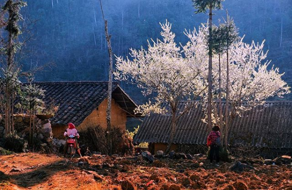 Xen giữa những ngọn núi, đá, giữa những ngôi nhà tường trình là những tán hoa đào, hoa mận khiến cho cuộc sống nơi đây bừng sáng sau những ngày đông lạnh lẽo. Ảnh: ngothanhhuu
