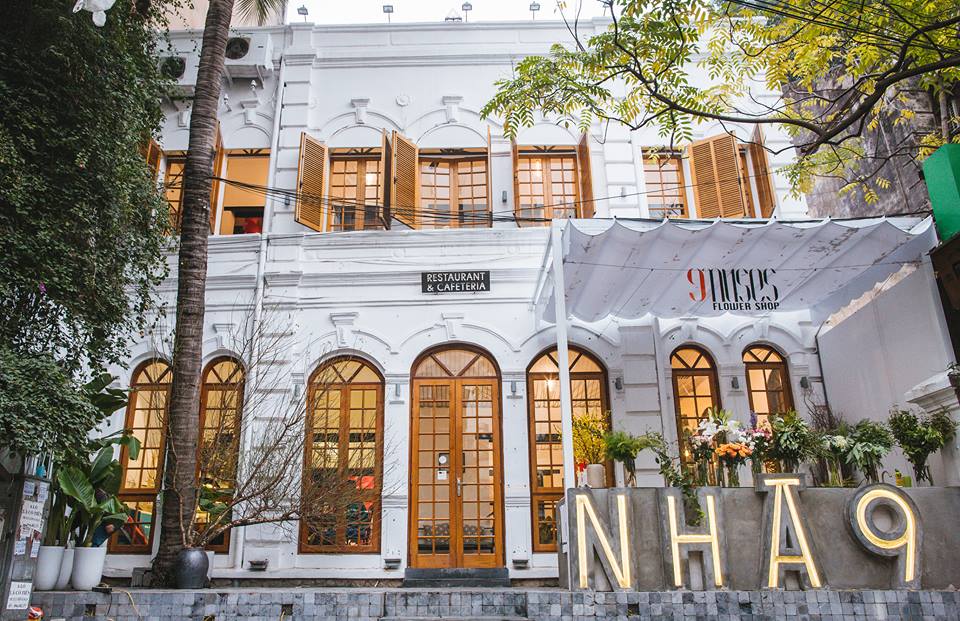 Thanh lịch pha chút cổ điển, Nhà 9NKC có những ô cửa sổ lớn để đón ánh sáng ngoài trời một cách tối đa. Không gian kiểu Âu với rất nhiều mảng xanh là điểm cộng rất lớn của Nhà 9NKC. Trưa hè nắng nóng, kiếm một góc xanh xanh mát lành như vậy rồi trú vào đây ”đánh chén” là tuyệt nhất!