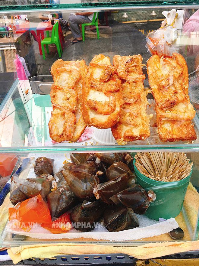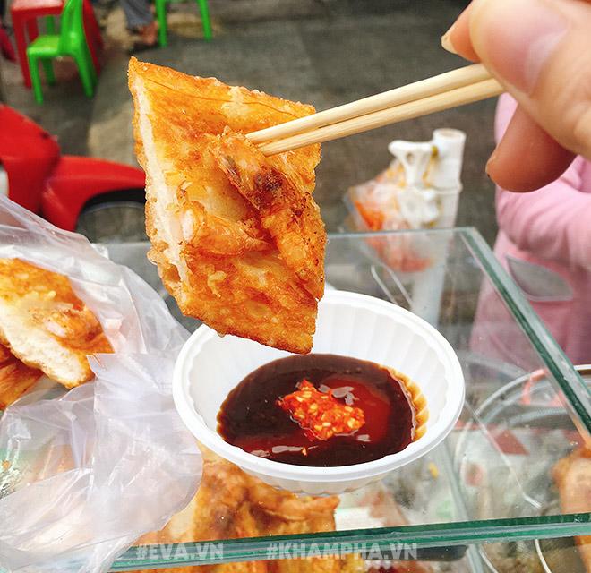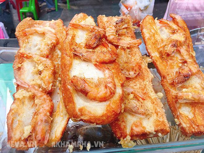 Những chiếc bánh mì chiên tôm hấp dẫn người đi đường.