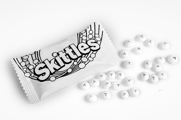 Trái ngược với những sắc màu rực rỡ vốn có, Skitlles biến hóa với một màu trắng đơn điệu cả từ bao bì sản phẩm đến những viên kẹo nằm bên trong. Tuy nhiên, chỉ có vẻ ngoài thay đổi, viên kẹo này vẫn mang đúng hương vị trái cây đặc trưng chứ không hề thay đổi sang một vị nào khác. Thật ngạc nhiên đúng không? Phiên bản đặc biệt này hiện tại chỉ đang được có mặt trên các cửa hàng bánh kẹo của nước Anh, nếu bạn muốn dùng thử vẫn có thể đặt mua qua trang mạng Amazon.