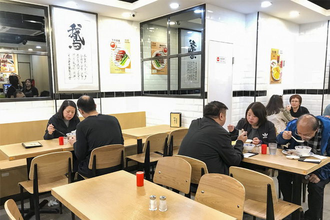 Nhìn từ bên ngoài, bạn sẽ thấy tiệm ngỗng quay được treo 2 bảng hiệu cả tiếng Trung lẫn tiếng Anh với nền đen chữ trắng nổi bật. Và khi đã yên vị trong cửa hàng thì bạn cũng đừng quá lo lắng khi nhìn thấy thực đơn chỉ toàn tiếng Trung. Bởi nhà hàng cũng có thực đơn tiếng Anh chuẩn bị sẵn nhưng bạn phải yêu cầu thì họ mới mang ra.