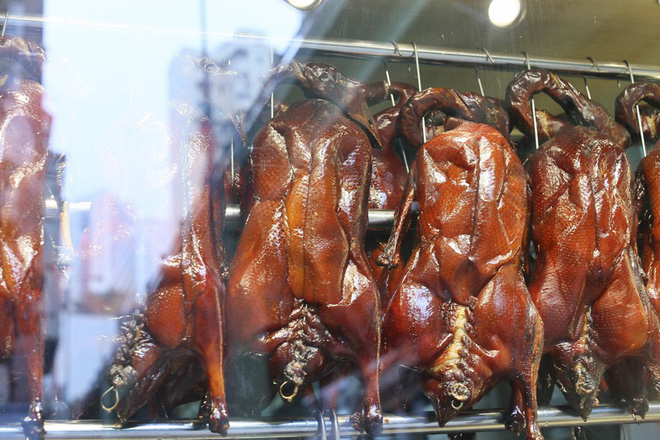 Ngỗng quay của tiệm Ki trông hấp dẫn ngay từ khi bạn đứng chờ trước quán bởi những con ngỗng này được quay bóng mượt với làn da sậm màu cùng mùi thơm khó cưỡng. Và ngoài món ngỗng quay thì tiệm này còn phục vụ thêm gà luộc, thịt heo quay và thịt xá xíu để đa dạng lựa chọn hơn cho khách hàng.