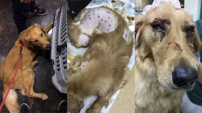 Chú chó bị đối xử thô bạo