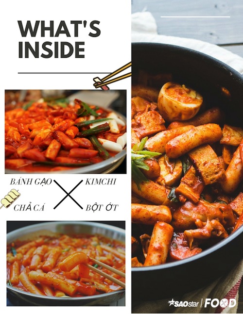 Bánh gạo được làm từ bột gạo nếp sau đó nắn thành đầy đủ mọi hình dạng, kích thước. Điều hấp dẫn của những ly Tokbokki là hương vị cay nồng của phần nước sốt. Tương ớt Hàn Quốc không “cay xé lưỡi” như những quả ớt tươi mà nó mang lại cái âm ấm và vị ngọt nhẹ khiến món ăn trở nên dễ chịu hơn. Nước sốt còn được bồi thêm vị chua dịu của những sợi kimchi được ngâm trong thời gian dài.