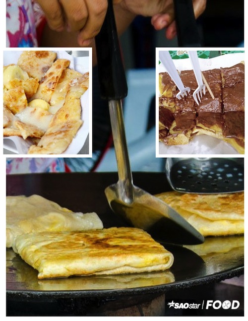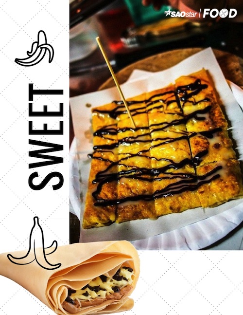 Bánh crepe hay còn gọi bánh kếp kiểu Thái thì phần nhân là những lát chuối ngọt ngào. Đây là món vặt bình dân và dễ ăn cho những ai hảo ngọt.