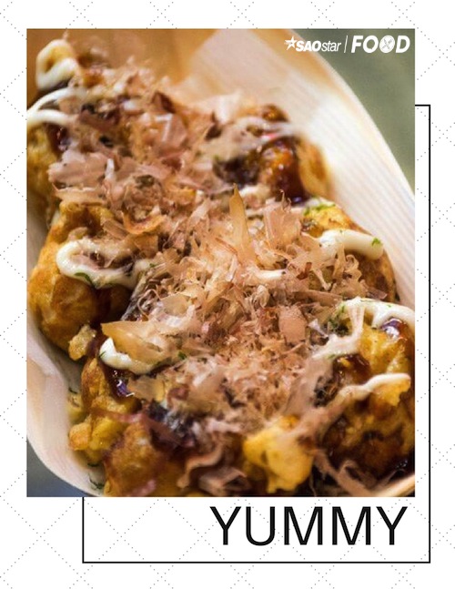 Bánh mới nướng đem ra còn nóng hổi, vỏ giòn giòn nhân bên trong thì béo béo có nguyên miếng bạch tuộc “sật sật”, thêm lớp sốt mayonnaise và okonomiyaki mặn mặn nữa kêu ra nhâm nhi quá đúng chuẩn.