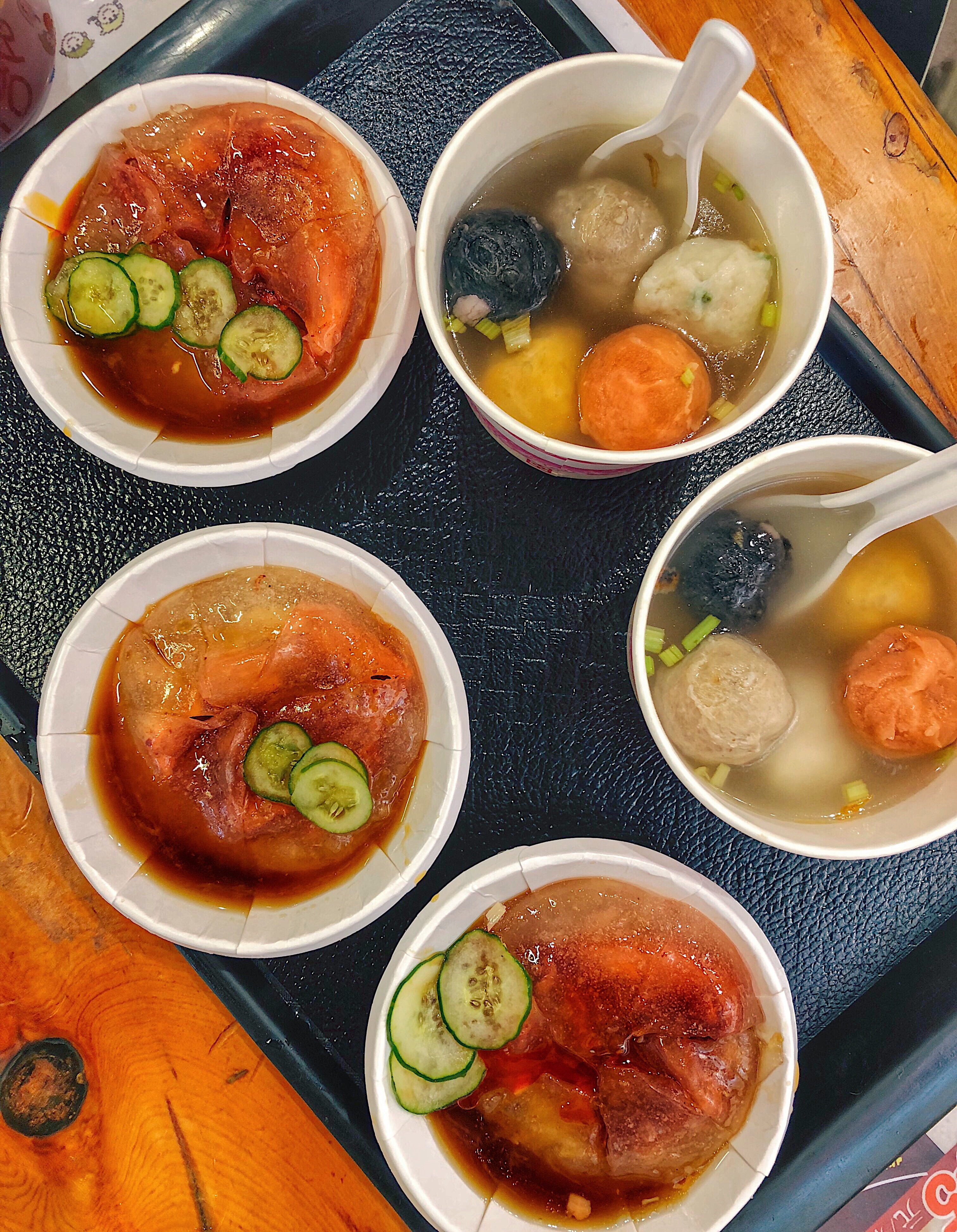 Meatball và thịt viên, trong đó, meat ball được làm từ thịt ướp thuốc bắc sau đó bọc 1 lớp mỏng bột (gồm có bột năng với bột mì) rồi đem luộc sơ, sau đó thịt được bỏ vào trong 1 nồi ngập dầu nhưng để lửa nhỏ, còn thịt viên thì có 4 vị cho các bạn lựa chọn - bột than tre (màu đen), truyền thống (màu xám nâu), mực & rau ngọc bích (trắng), thảo mộc thuốc bắc (màu hồng) và kim chi (màu vàng cam).