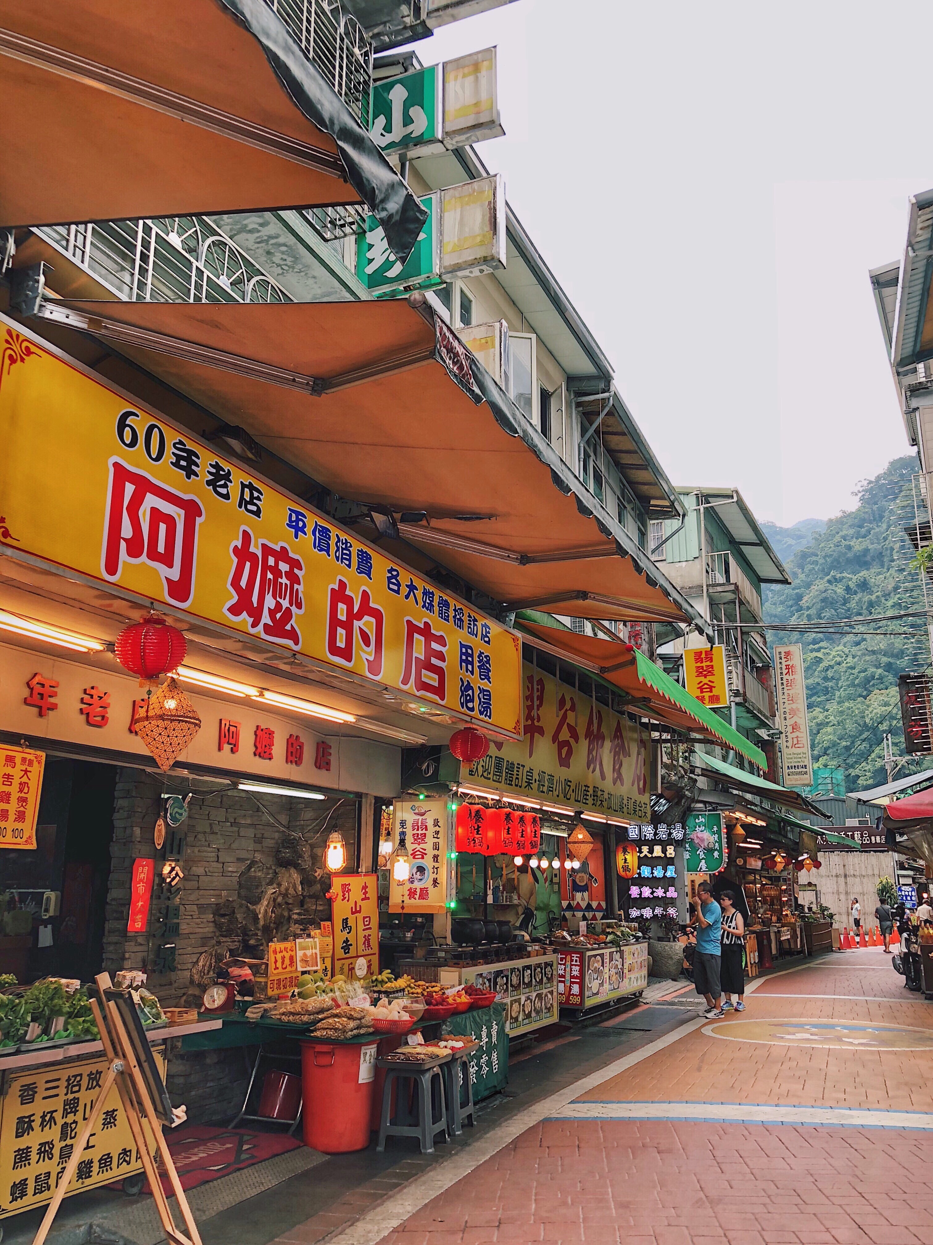 Đến phố cổ Jiufen (Jiufen Old Street) cách đó không xa. Nơi đây được mệnh danh là “Thiên đường ăn vặt”, trong đó hai con đường đông đúc và nhộn nhịp nhất là Kinh Tiên Lộ và Cô Sơn tập trung tất cả các hàng quán ăn vặt. Đừng quên thử các món ăn sau: Meatball và thịt viên; Cá viên cà ri; Chè cổ truyền, kem cuộn, ốc nướng,…