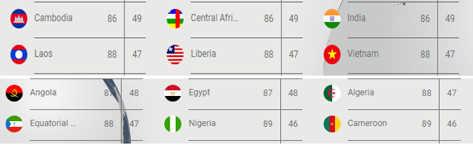 Trong năm nay, Việt Nam đứng ở vị trí 88 cùng Lào, Algeria, Liberia và Guinea Xích đạo khi người dân được miễn thị thực tại 47 quốc gia. Hồi tháng 10/2017, Việt Nam xếp thứ 78 với hộ chiếu được miễn thị thực ở 48 quốc gia.