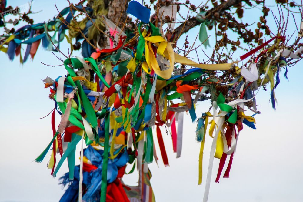 Những dải lụa cầu may đầy màu sắc của tín đồ Phật giáo ở Phật bảo tháp giác ngộ, trên đảo Ogoy, nằm trong quần thể hồ Baikal. Hồ Baikal được biết tới là hồ nước ngọt có trữ lượng lớn nhất thế giới, chiếm 20% tổng lượng nước ngọt không bị đóng băng quanh năm trên bề mặt thế giới.