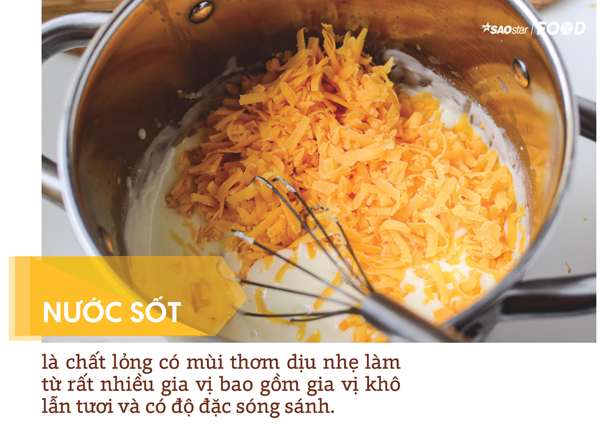 Sốt là chất lỏng có mùi thơm dịu nhẹ làm từ rất nhiều gia vị bao gồm gia vị khô lẫn tươi và có độ sánh nhẹ. Chúng được nấu bằng cách đun trên bếp ở nhiệt độ vừa để làm bay hơi những chất lỏng dư thừa hoặc cho thêm hỗn hợp bơ và bột vào để làm đặc lại phần sốt. Để ra được thành quả nước sốt đạt đúng tiêu chuẩn sánh mịn tuyệt đối không phải là dễ. Sốt phải có hương vị rõ ràng, kết cấu tốt, mượt mà. Đa phần các loại nước sốt thường khá lỏng đủ để có thể dễ dàng đổ ra, nhưng cũng có một số loại đặc phải dùng muỗng để múc. Người đầu bếp làm ra những loại sốt là người có một vị giác cực kì nhạy bén và tinh tế, khéo léo và tỉ mỉ trong từng công đoạn nhỏ và đòi hỏi những kỹ năng cơ bản cần phải được rèn giũa miệt mài.