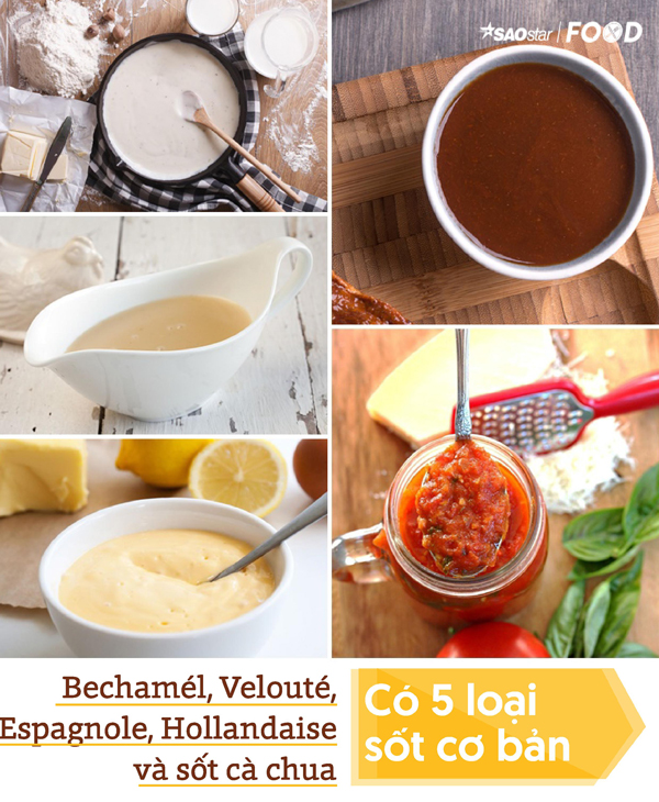 Ẩm thực là một vùng đất màu mỡ và khái niệm về sự sáng tạo là không hề có bất kì biên giới hay rào cản nào. Chính vì vậy mà các đầu bếp đã chế biến ra rất nhiều loại sốt làm phong phú món ăn của mình, không những vậy mà thậm chí một món ăn có thể có nhiều loại sốt khác nhau để chọn lựa cho phù hợp khẩu vị từng thực khách. Tuy nhiên, thực tế trong các món Âu, cụ thể bắt nguồn từ ẩm thực Pháp - nền ẩm thực hàng đầu thế giới, có 5 loại sốt cơ bản nhất, mỗi loại sẽ là nền tảng khởi đầu cho nhiều loại sốt khác trong ẩm thực mà chúng ta ít nhiều đã từng được nếm thử: sốt Bechamél, sốt Velouté, sốt Espagnole, sốt cà chua và sốt Hollandaise. Trong đó, 3 loại sốt đầu tiên được sáng chế bởi đầu bếp Marie-Antoine Carême vào thế kỉ 19 và đến thế kỉ 20 thì sốt cà chua và Hollandaise đã được bổ sung vào bởi đầu bếp Auguste Escoffier.